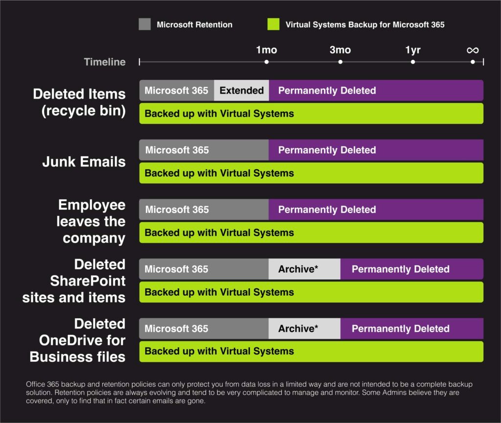 VSystems steps in when standard Microsoft 365 backup options aren’t enough.
